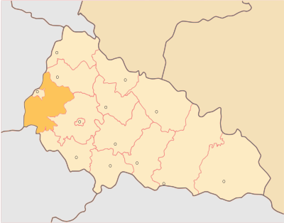 Uzhhorod District of Zakarpattia Oblast, Ukraine, and its boundaries with neighbouring countries highlighted.