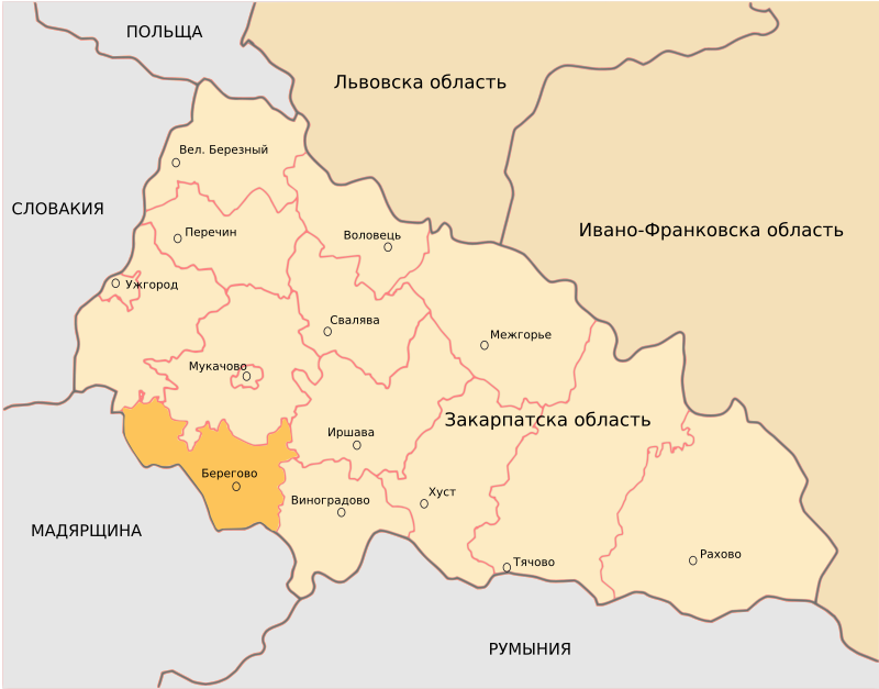- Berehove District Zakarpattia Oblast Ukraine map outline rural districts boundaries