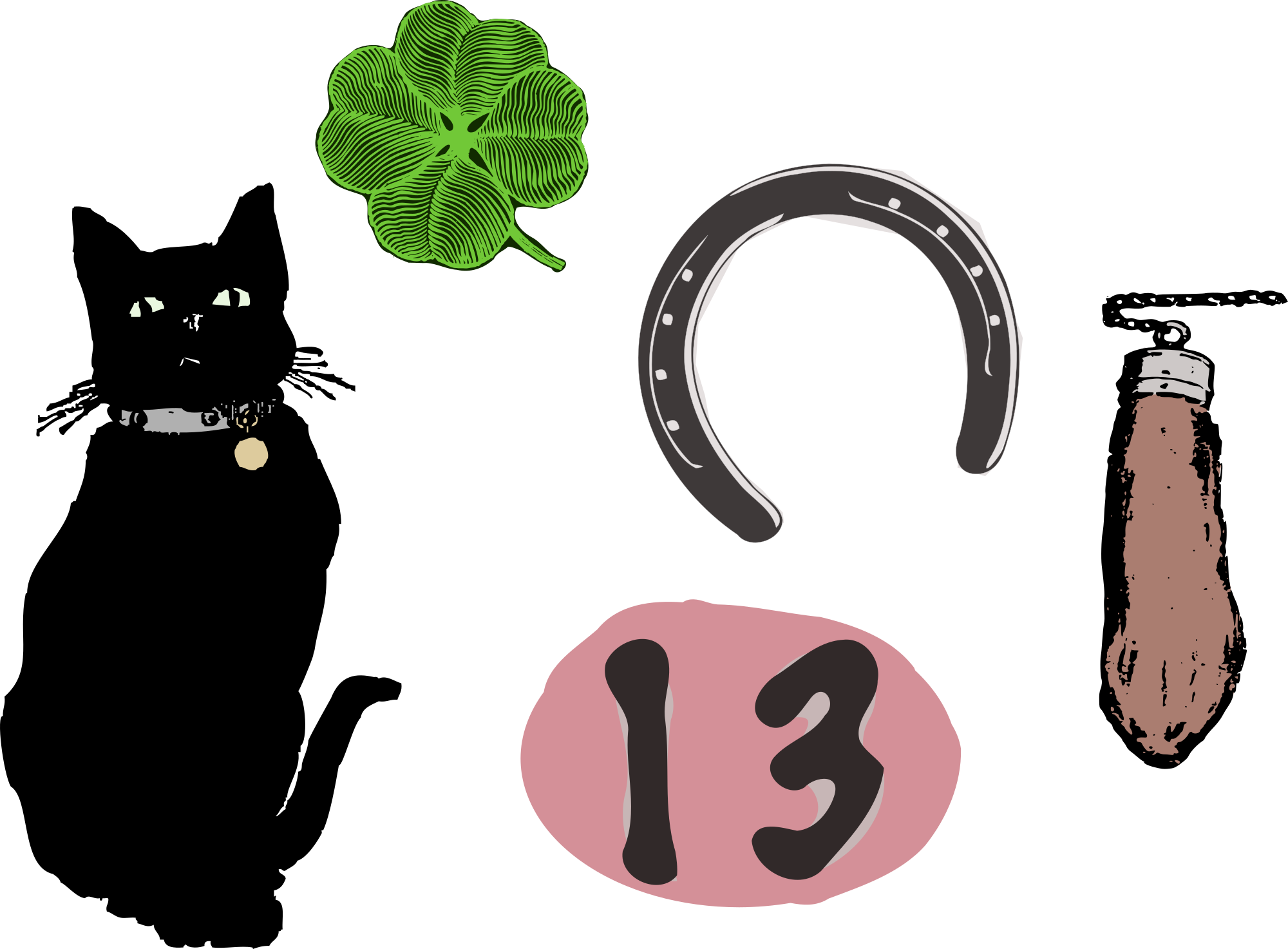 - remix+381 remix+270260 remix+147613 remix+191237 superstitions black+cat horseshoe four+leaf+clover rabbit's+foot charm superstitious 13 thirteen unlucky lucky EFL ESL superstition