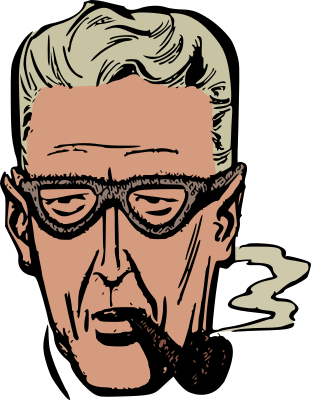 A man in glasses smoking a pipe.