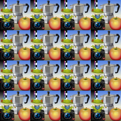 A test image for trying out various glitchy filters -with the glitch frog present inside.