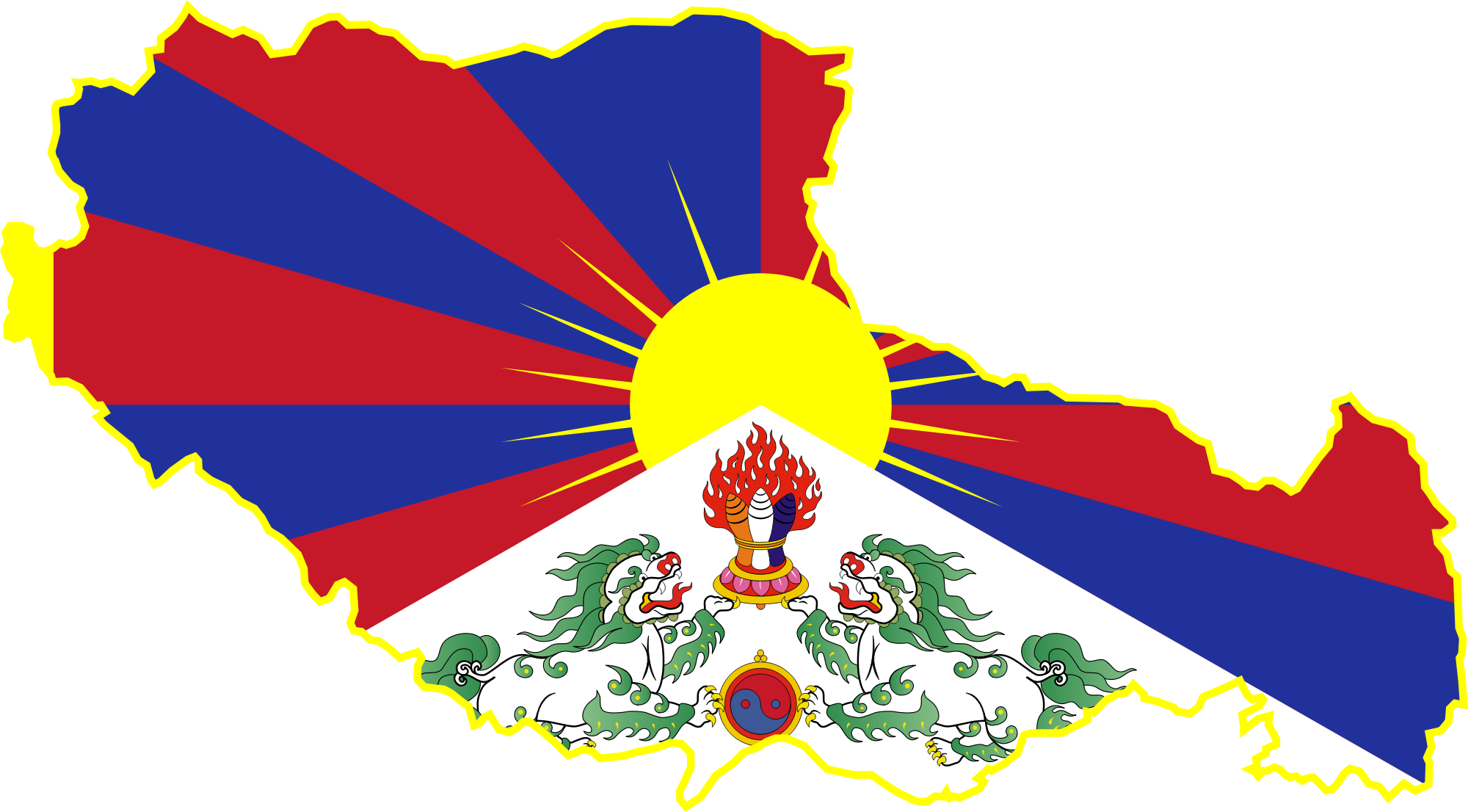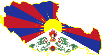 Flag of Tibet embedded in its borders.Boarder from https://commons.wikimedia.org/wiki/File:China_blank_map.svg