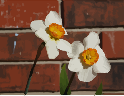 two white jonquils with golden-orange centers