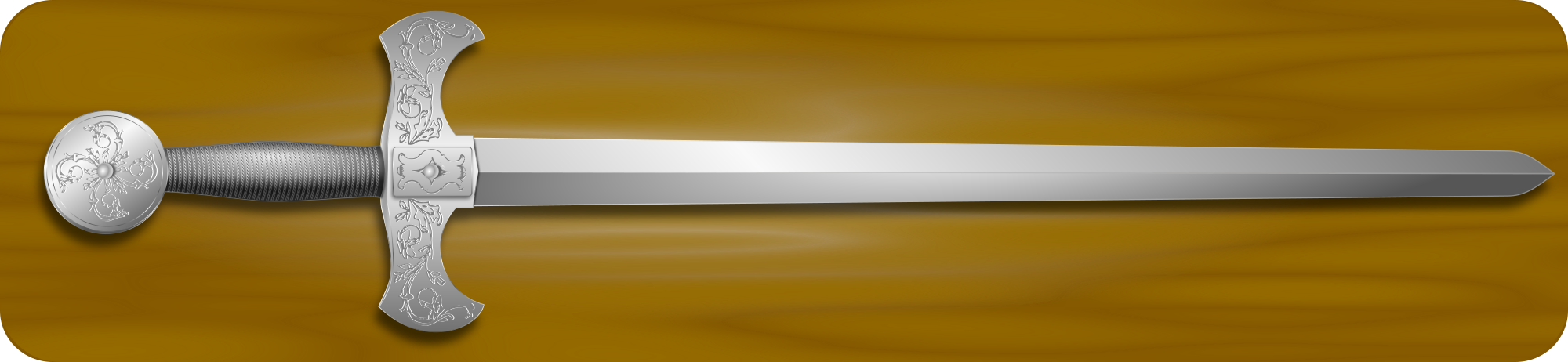 Sword on a wooden board.