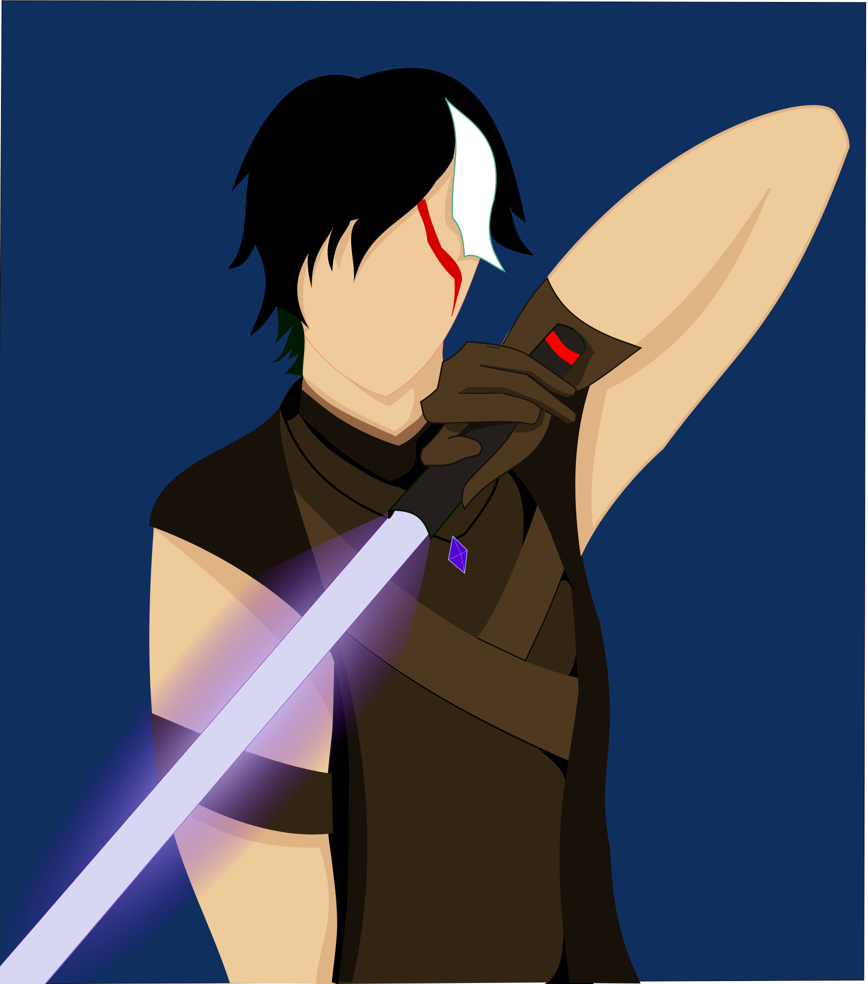 Boy trains with a light sword. Maybe he will defeat the evil.