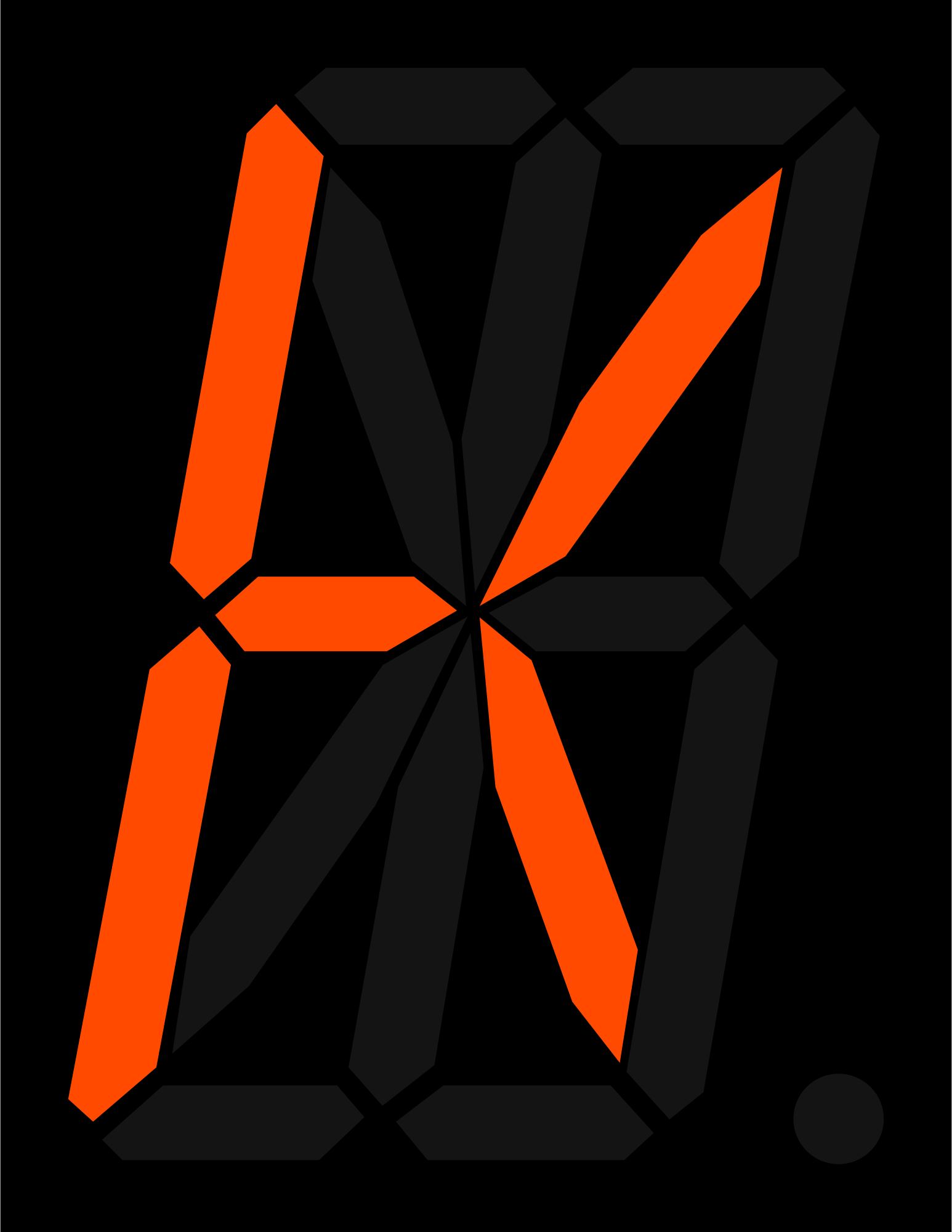 A simple sixteen segment display showing a K.