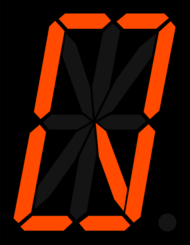 A simple sixteen segment display showing a Q.