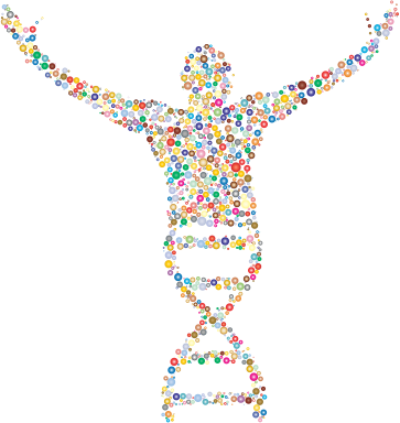 - remix+277334 Boy Excited Human Male Man People Person Silhouette Triumph Victory DNA Deoxyribonucleic Acid Health Molecules Molecular Medicine Medical Biology Science Research Cellular Abstract Geometric Art Circles Dots Colorful Prismatic Chromatic Rainbow