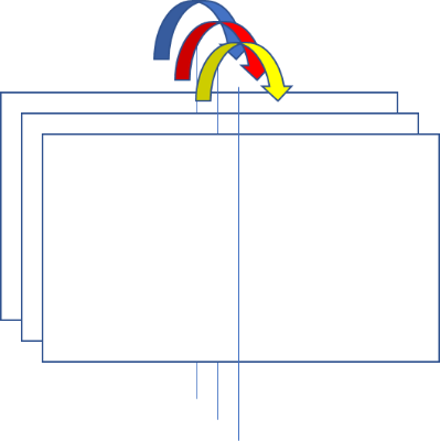 A piece of clip art for teachers: a diagram with arrows for how to make a 3-paper 6-page flip chart, hamburger style.