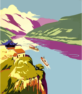 - poster antique vintage travel advert advertisement China Chinese Yangtzse river gorge Cháng Jiāng