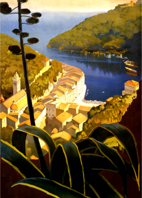 - poster antique vintage travel advert advertisement Italy Italian town sea seaside coast beach village harbour harbor