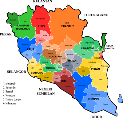 New electoral map of Pahang based on March 2017 re-delineation proposal.