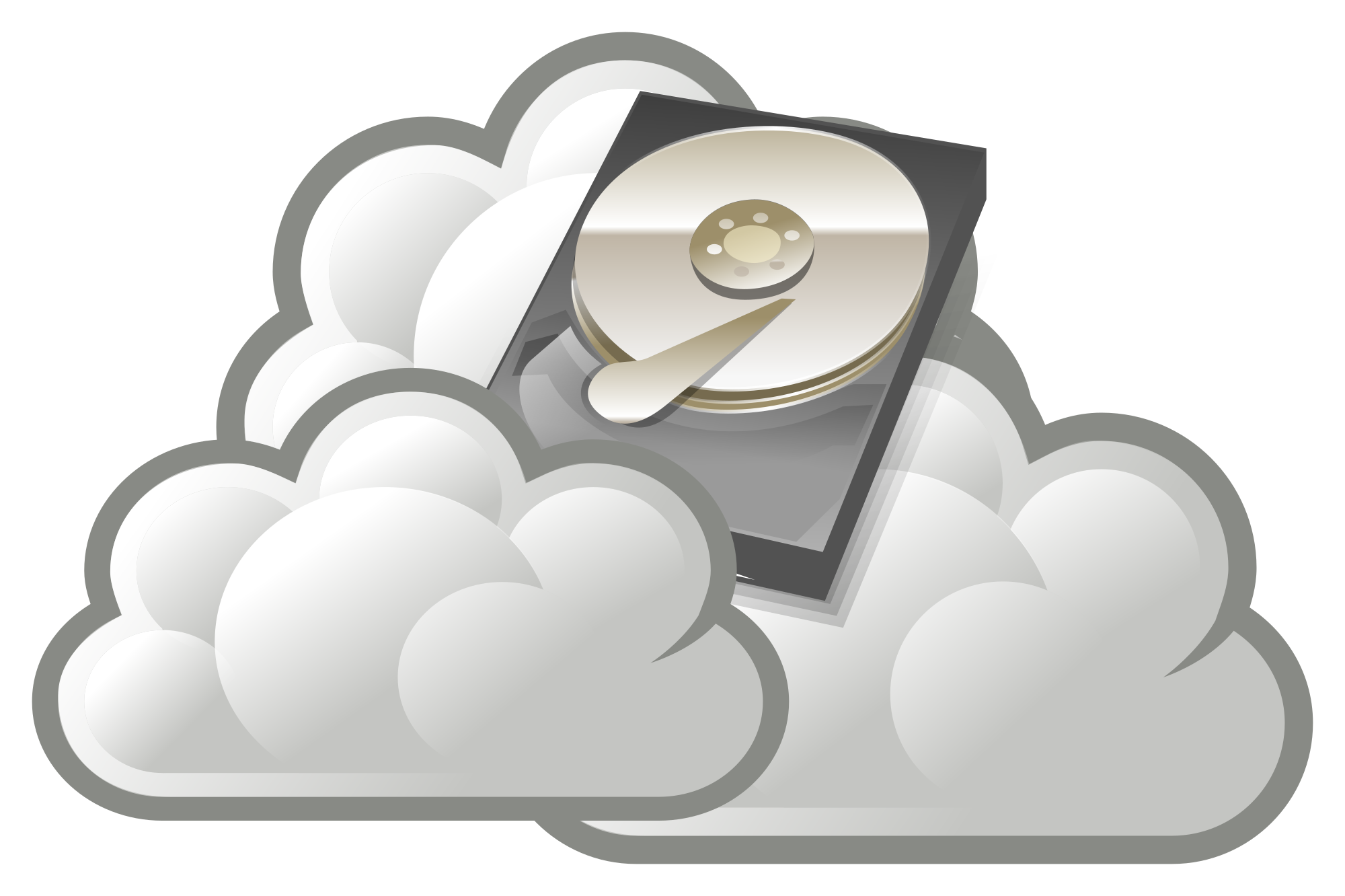 Cloud drive illustration - standard HDD lying on gray clouds :-)