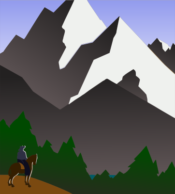 - advert advertisement America antique country countryside Earth Science hill horse landscapes mountain poster rider riding scene scenery travel United States US USA vintage