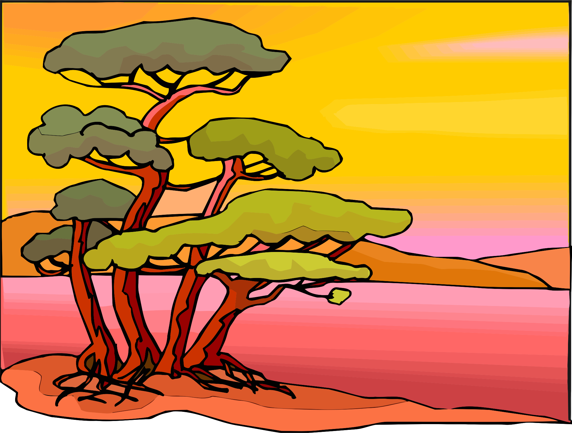 tree plant abstract colourful colorful scene bush sketch
