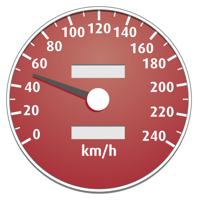 A French car meter, with speed in km.