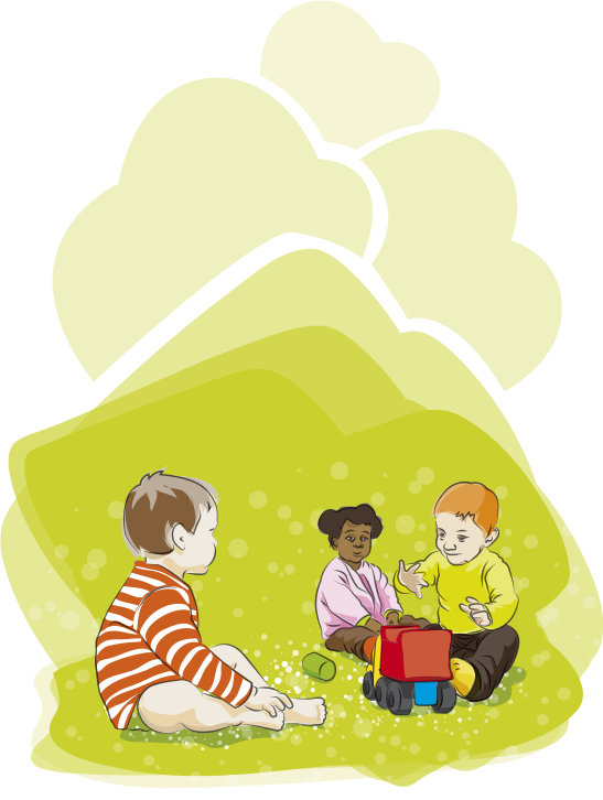Three children play with truck toy.