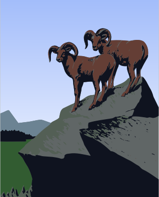 - poster antique vintage travel advert advertisement national park park US USA America United States goat animal mammal mountain