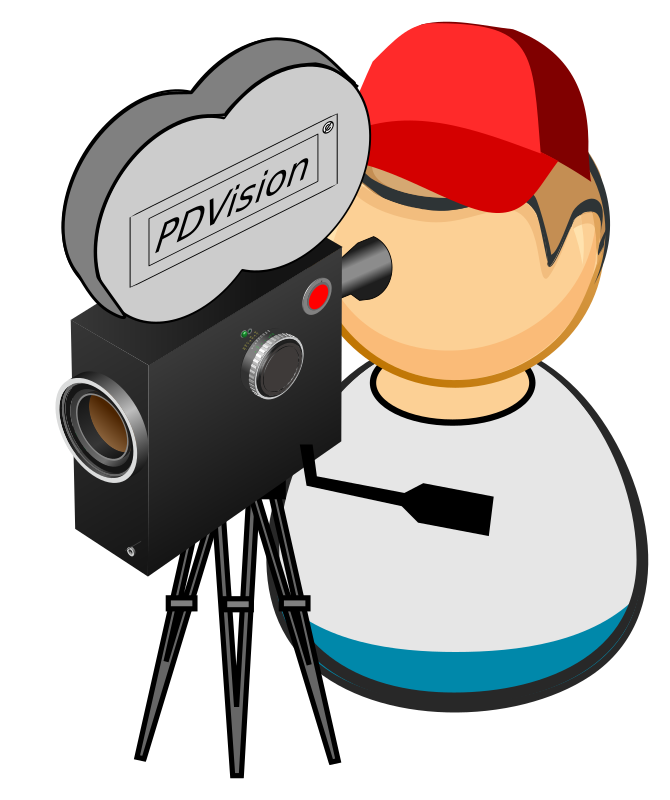 simplified icon of a guy with movie camera