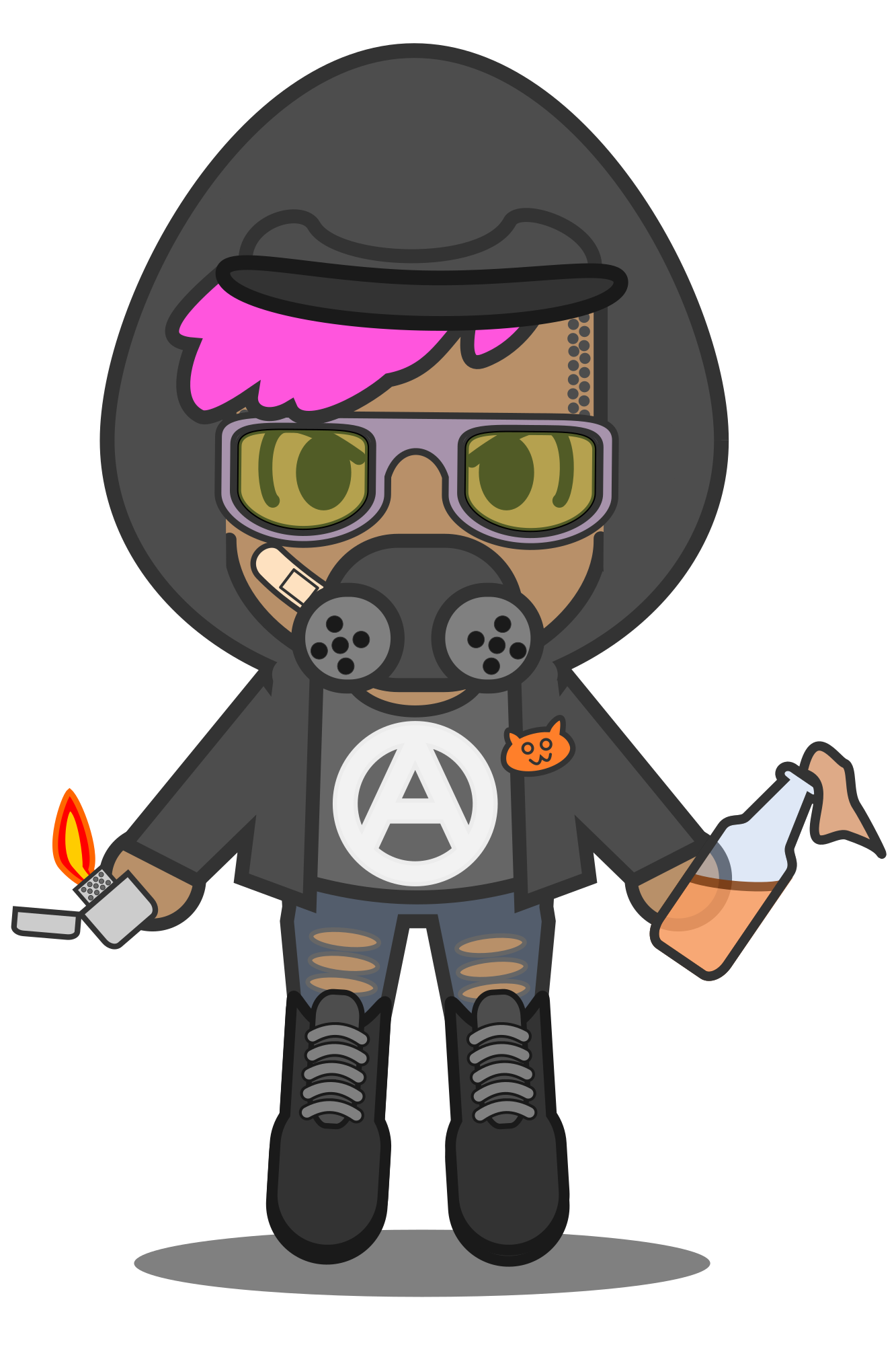 A kawaii antifa queer protester, with gas mask and goggles.