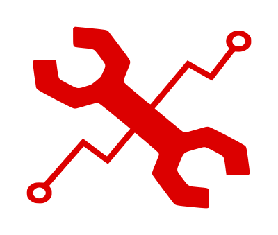 Icon of wrench and circuitry, red