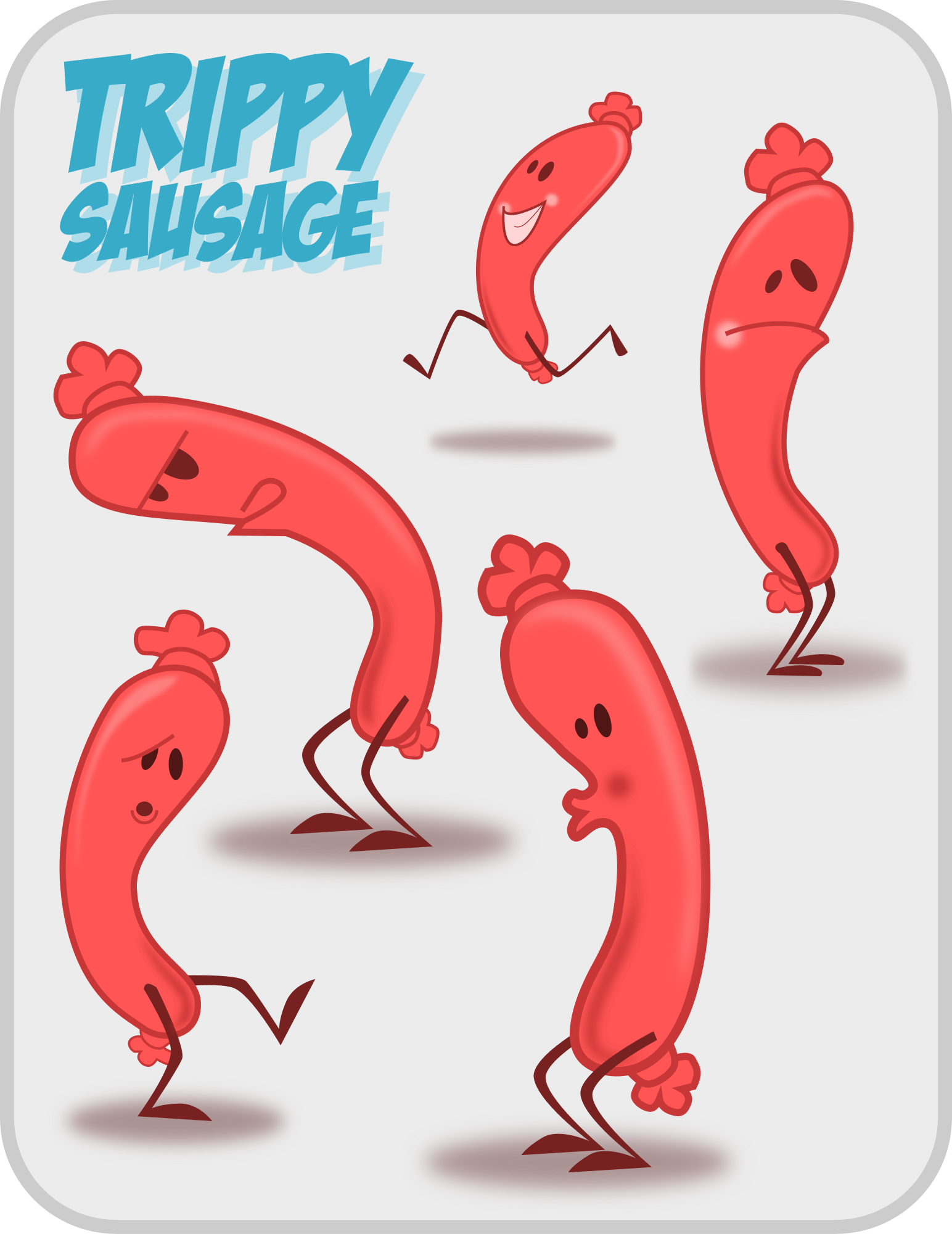 Trippy Sausage is from the public domain clip art series created by Pencilsauce.com. This was created using Inkscape from www.inkscape.org