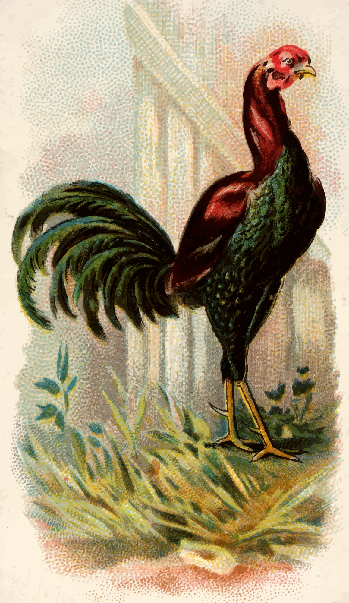 One of the "Prize and Game Chickens" series of cigarette cards from Allen & Ginter, late 1800s. Due to their age I have done a little restoration where needed and also cropped them to just the picture, adjusted contrast, brightness and colour saturation. The originals can be found on the New York Metropolitan Museum of Art web site.