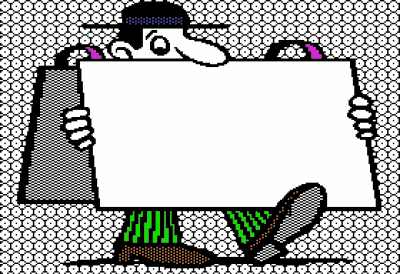 - remix+279132 Beagle Bros Beagle Screens retro 8-bit 8bit old school OldSchool oldskool low-res LowRes Apple II presentation clipart presentation graphic caption cartoon pixel art PixelArt sign sandwich board suspender sign panel sign sandwich board