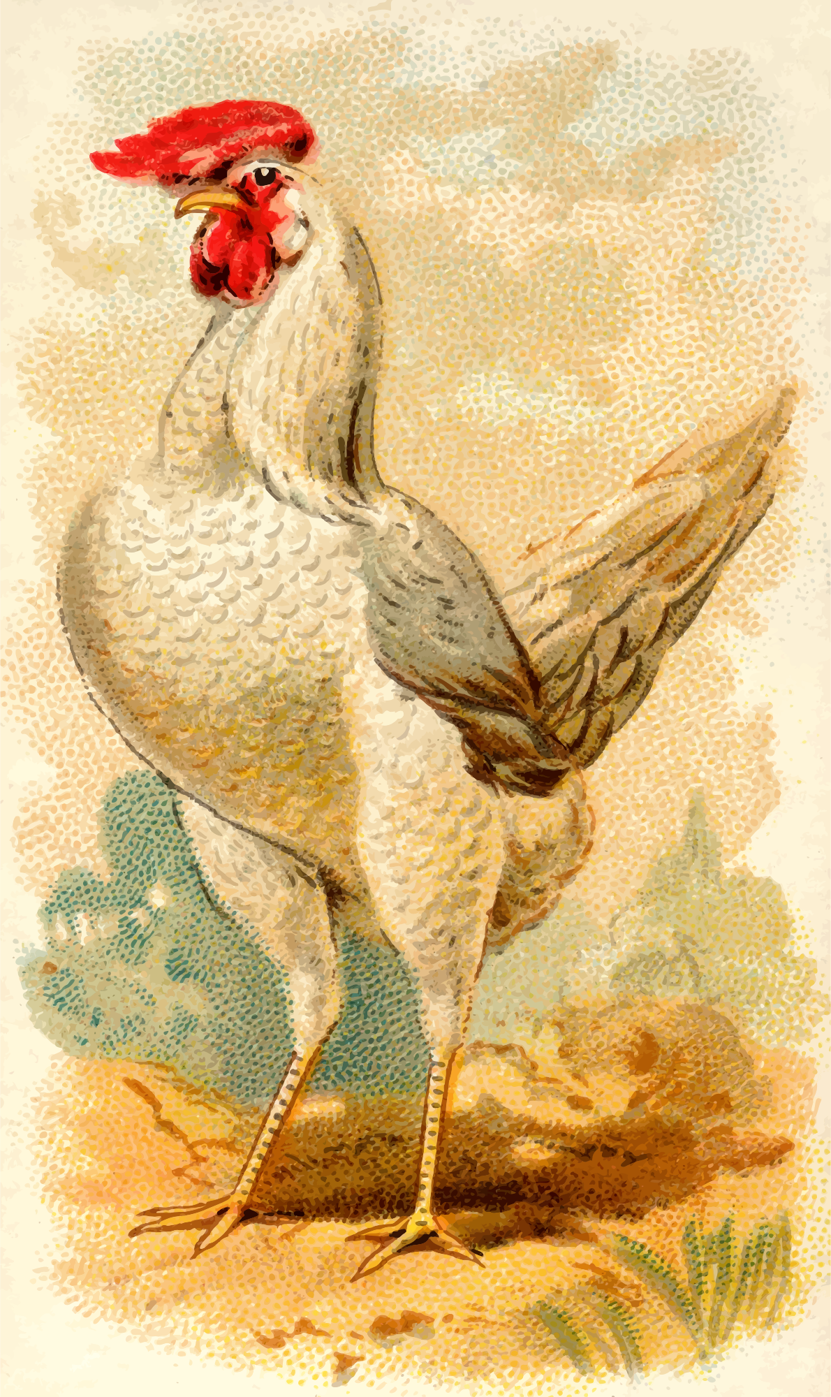 One of the "Prize and Game Chickens" series of cigarette cards from Allen & Ginter, late 1800s. Due to their age I have done a little restoration where needed and also cropped them to just the picture, adjusted contrast, brightness and colour saturation. The originals can be found on the New York Metropolitan Museum of Art web site.