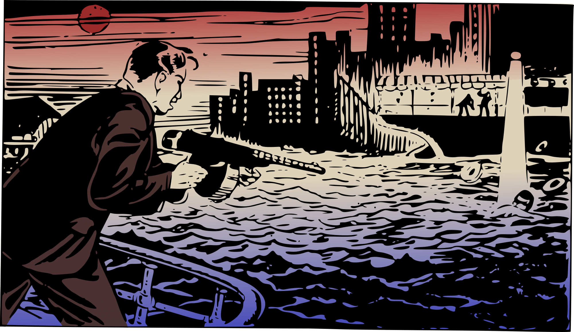 Rat-a-tat-tat! This guy is letting bullets rain!(Based on a public domain comic book illustration.)