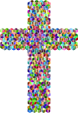 - Catholic Christ Christian Church Cross Crucifix Divine Faith God Holy Jesus Messiah Prayer Religion Spirituality Abstract Geometric Art Cubes Colorful Prismatic Chromatic Rainbow