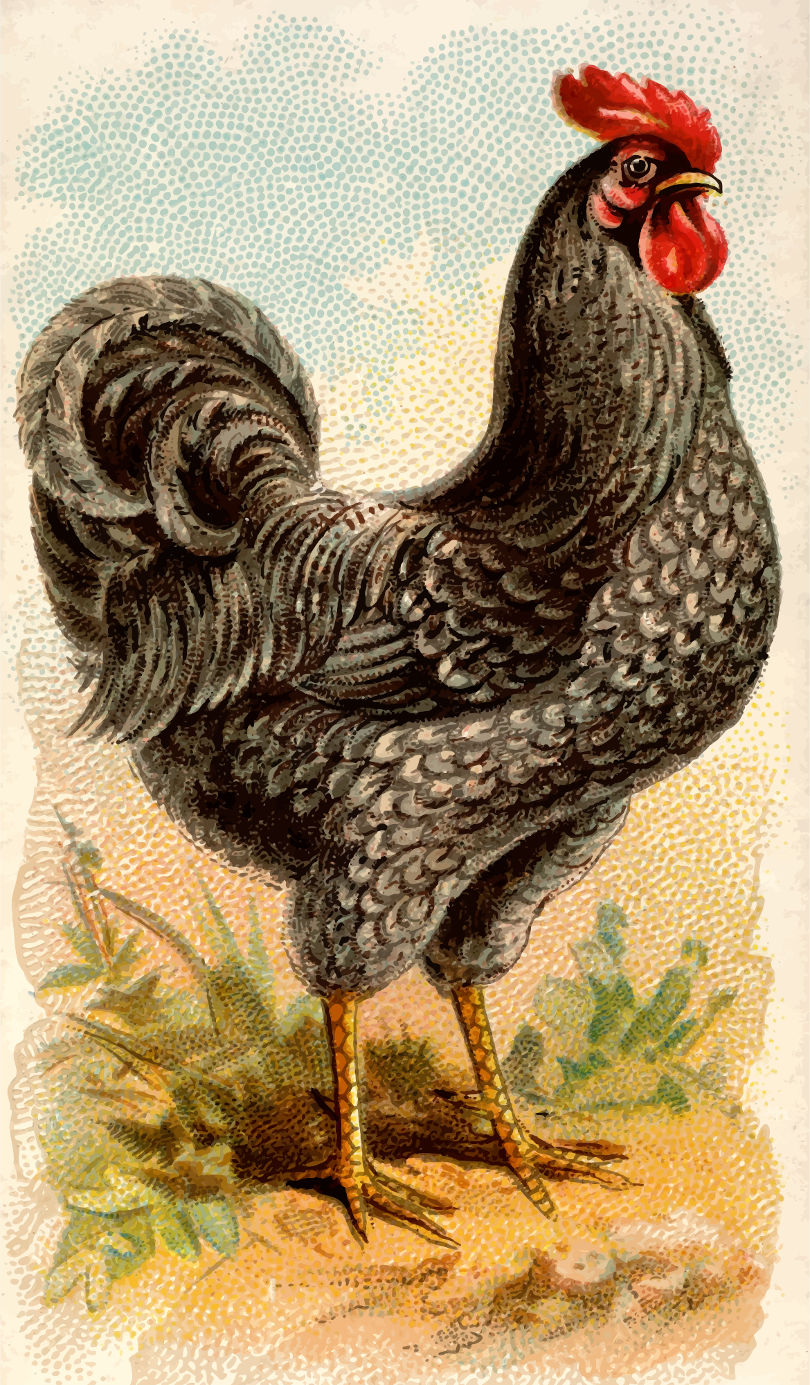 One of the "Prize and Game Chickens" series of cigarette cards from Allen & Ginter, late 1800s. Due to their age I have done a little restoration where needed and also cropped them to just the picture, adjusted contrast, brightness and colour saturation. The originals can be found on the New York Metropolitan Museum of Art web site