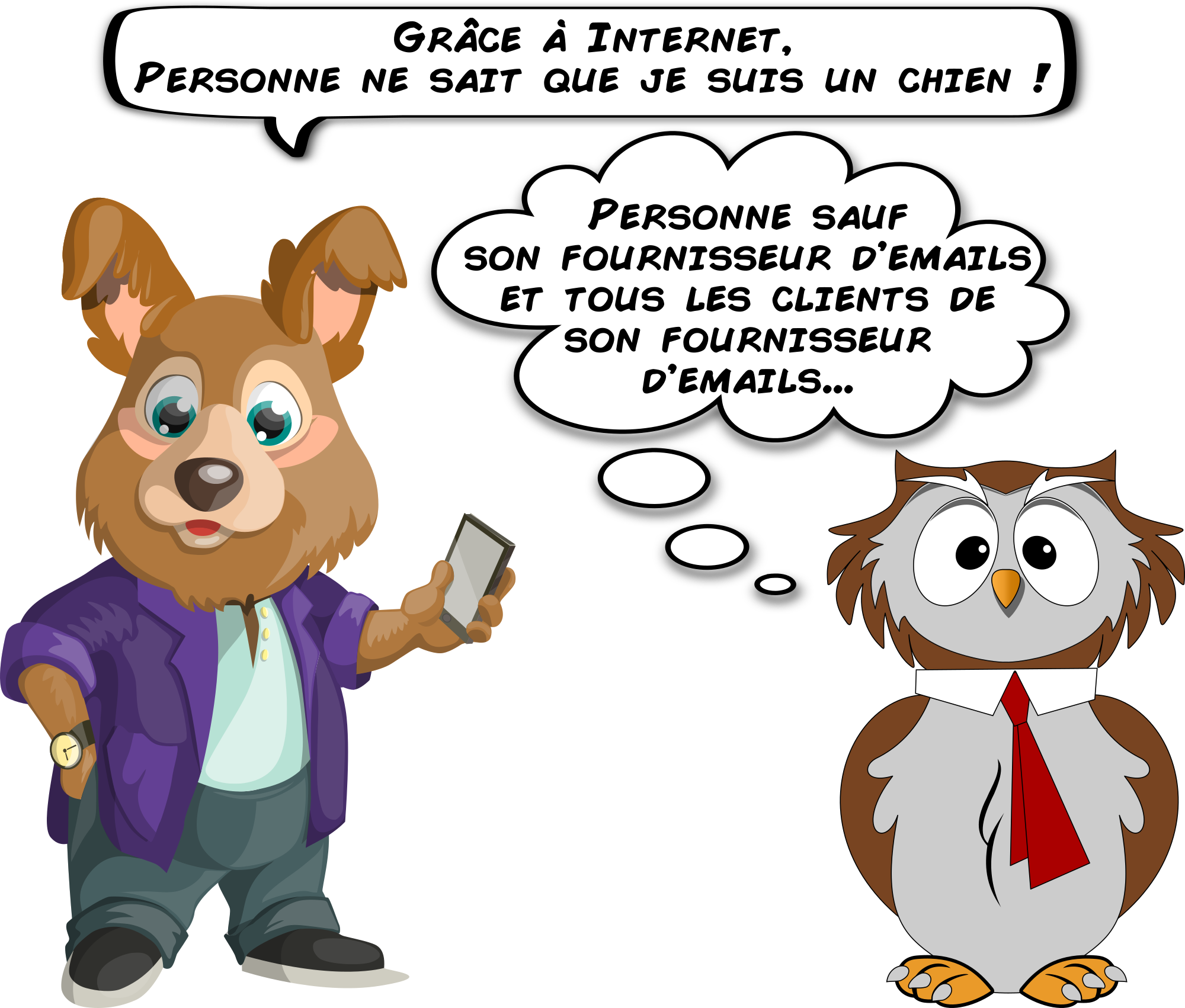 A dog and an owl about email privacy (French)