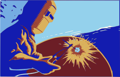 I thought that colour did this welder image more justice, so I used the original WPA public domain source to whip up this!
