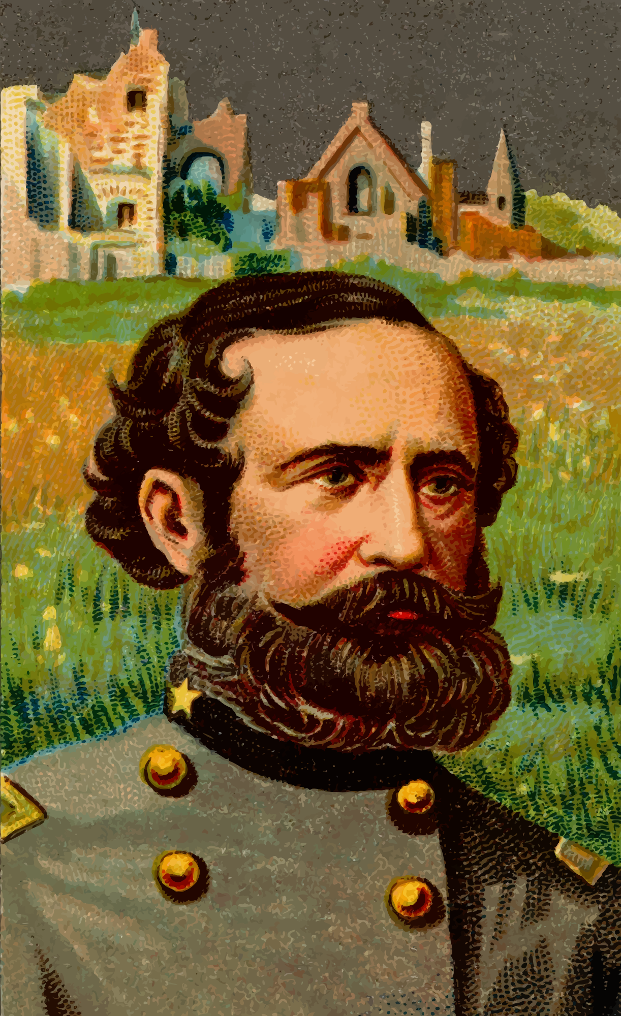 One of the "Great Generals" series of cigarette cards from Allen & Ginter, late 1800s. Due to their age I have done a little restoration where needed and also cropped them to just the picture, adjusted contrast, brightness and colour saturation. The originals can be found on the New York Metropolitan Museum of Art web site