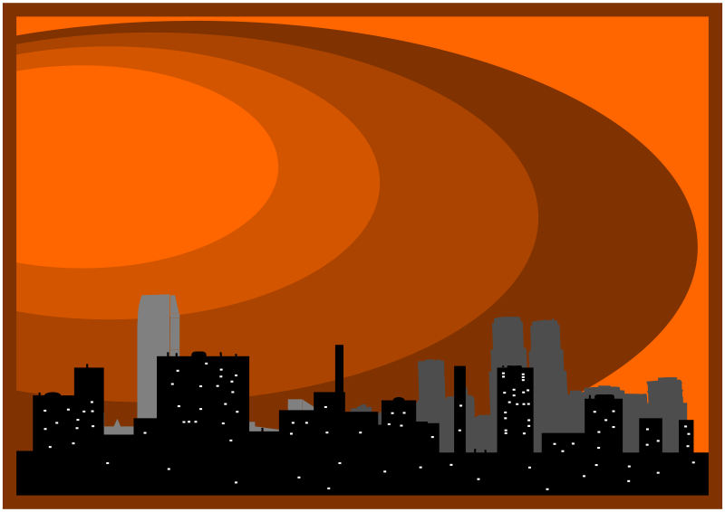 Città al tramonto. City at sunset.
