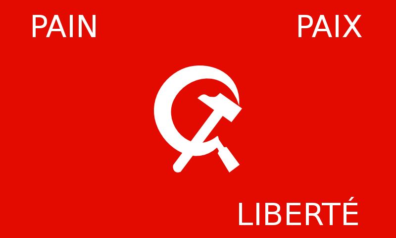 This is the banner of the Algerian Communist Party, that existed between 1920 and 1964. The text on the banner states "Bread, peace, freedom"