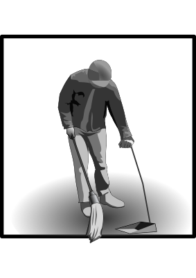 Worker sweeping, graphic for cleaning service company