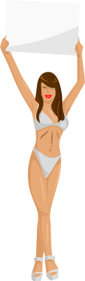 Girl with sign (white bikini, brown hair, light skin)