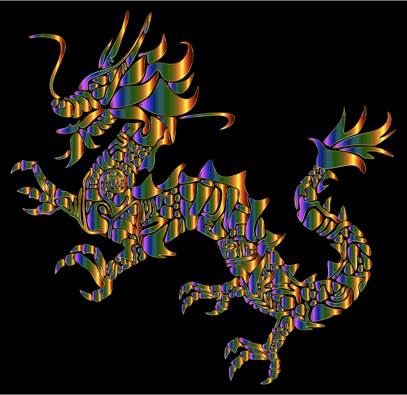 Chromatic Tribal Asian Dragon Silhouette