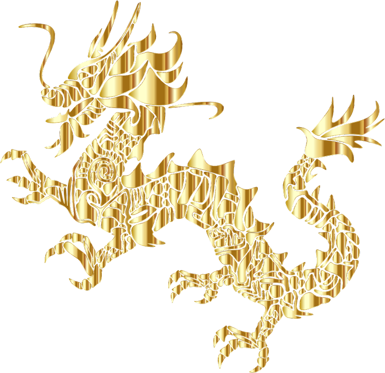 Gold Tribal Asian Dragon Silhouette No Background