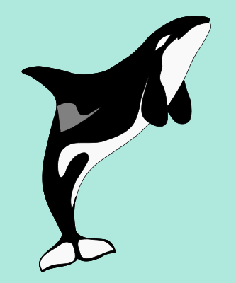 This is a basic jumping Orca (oddly sometimes called "killer whales" even though they are oceanic dolphins I believe) made by Wikimedia user "Petruss" and released to the public domain. Originally it had labels but I simplified it to make it more "cliparty" in my opinion.
