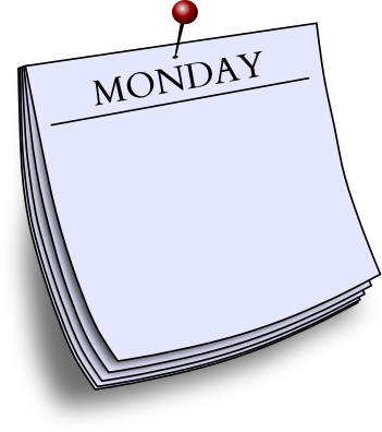 A blank note headed "Monday" pinned to the wall