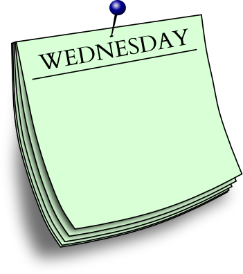 A blank note headed "Wednesday" pinned to the wall