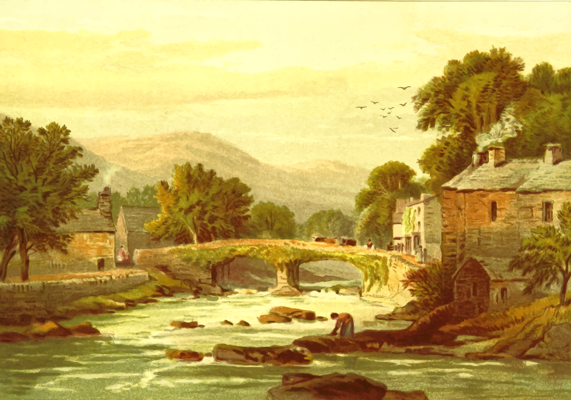 - scenery scene Britain British Countryside UK United Kingdom rural Beddgelert Wales Welsh river bridge
