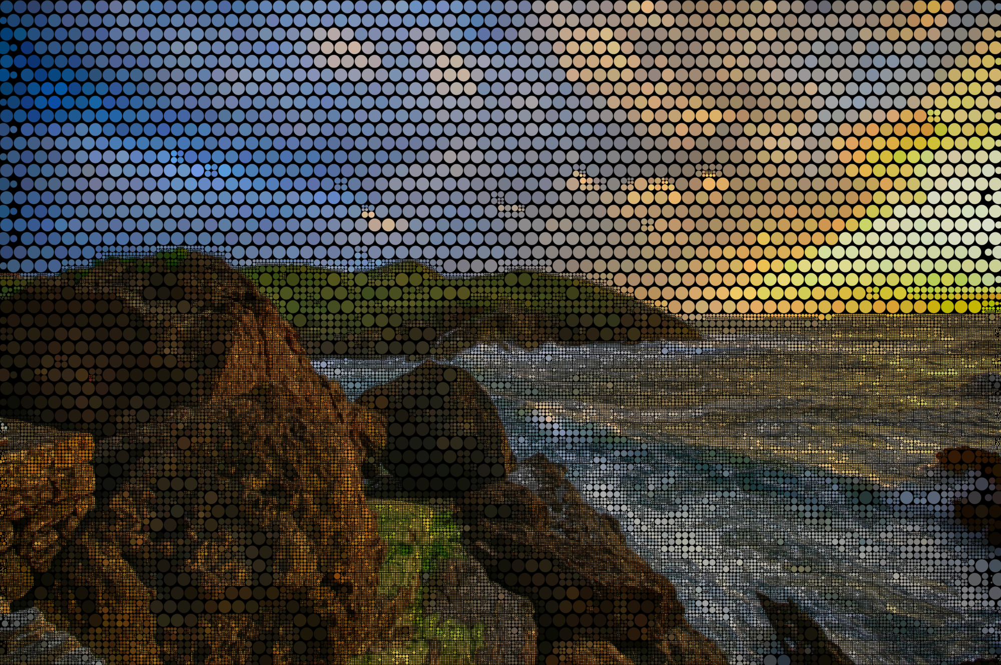 - Abstract Art Circles Clouds Dots Geometric Hills Landscape Coastline Mosaic Nature Photograph Ocean Sea Sky Source+Pixabay Surreal