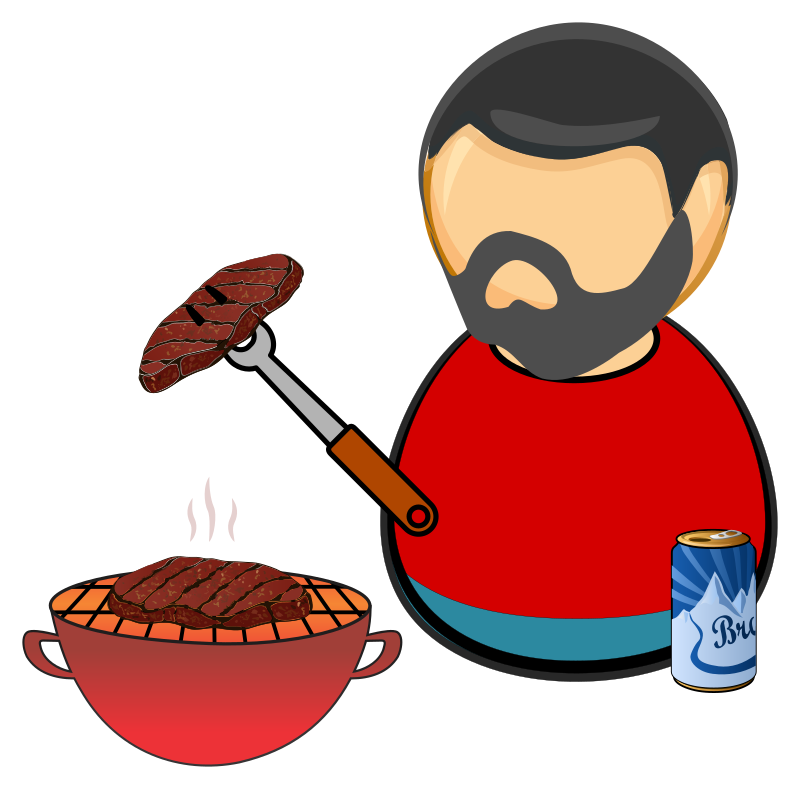 Just a guy with barbecue / grill holding a steak :-)