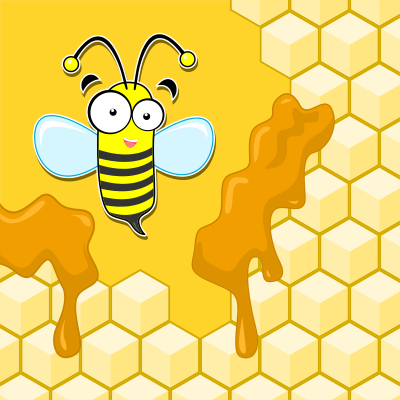 maskot lebah yang lucu terbang diatas sarangnya yang mengalir banyak madu