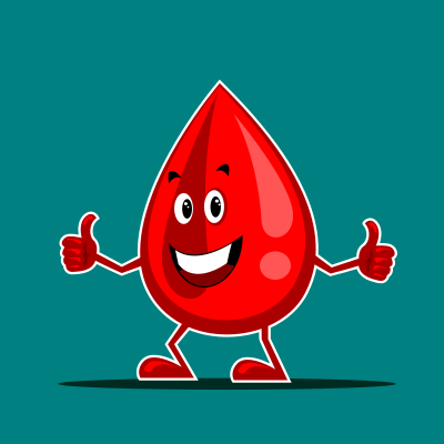 maskot tetesan darah dengan mengacungkan jempol terlihat lucu dan imut