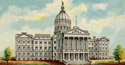 One of the "General Government and State Capitol Buildings" series of cigarette cards from Allen & Ginter, late 1800s. Due to their age I have done a little restoration where needed and also cropped them to just the picture, adjusted contrast, brightness and colour saturation. The originals can be found on the New York Metropolitan Museum of Art web site.